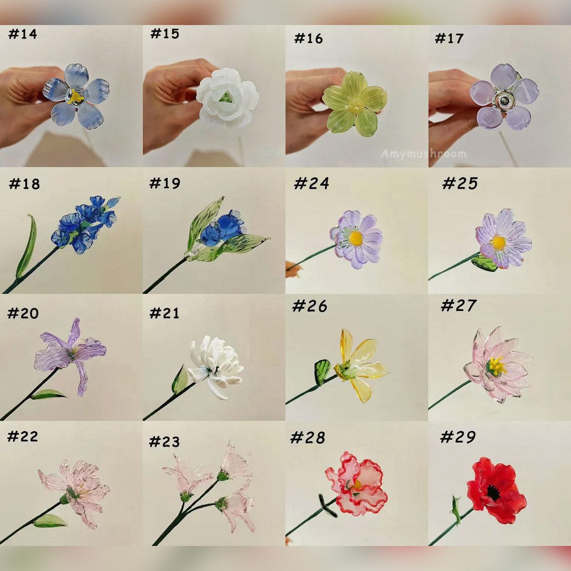 Artisan Quality: Each bloom is hand-blown (– wide) and showcases a beautiful range of textures, from smooth tulip petals to ruffled peony edges.