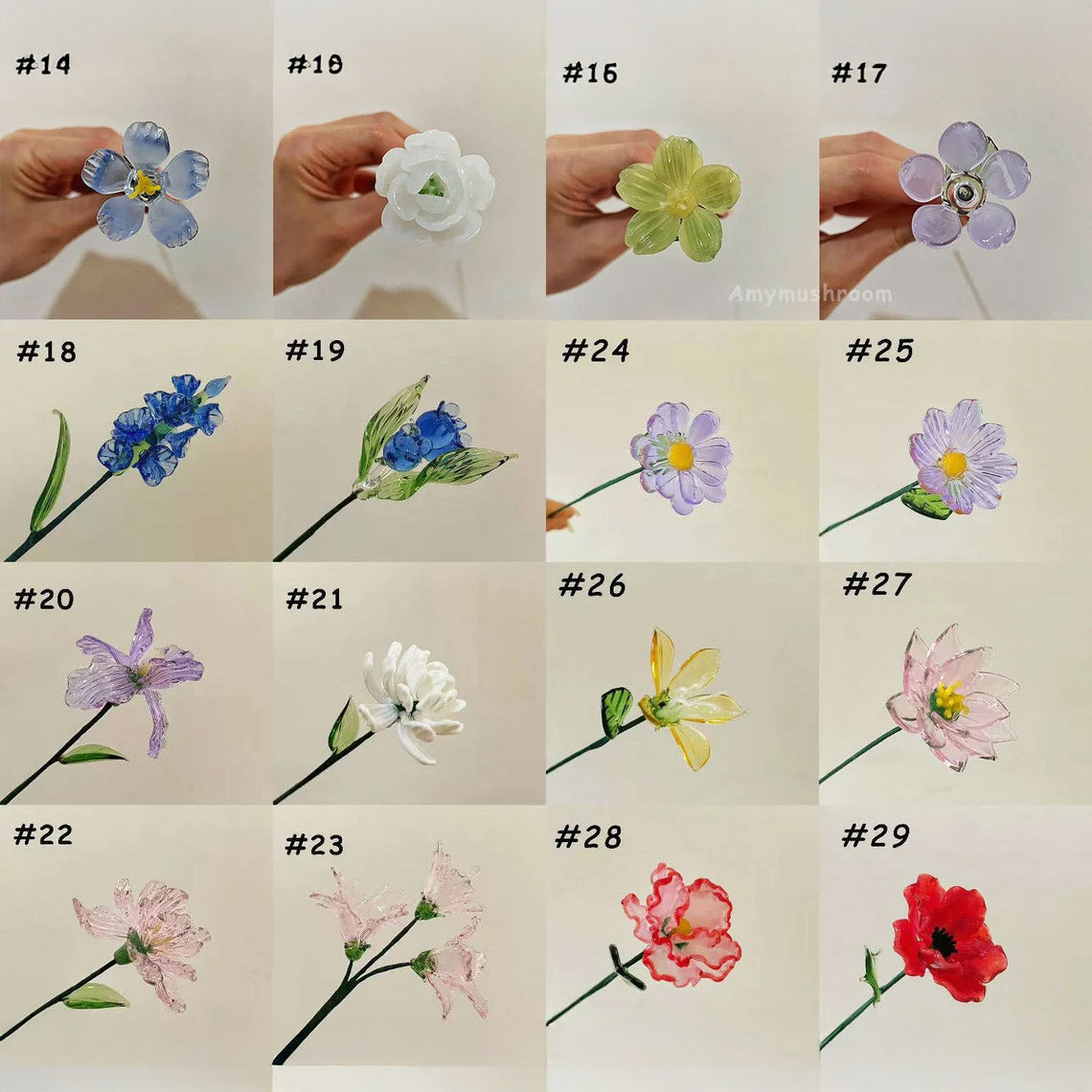 Mini Hand-Blown Yellow Floral Bouquet – Mixed Sunshine Glass Flower Stems